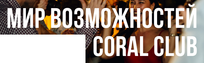 В Coral Club перед каждым вне зависимости от национальности, цвета кожи, вероисповедания, возраста и опыта стоят равные возможности, потому что все различия отступают перед желанием менять свою жизнь. Партнерство с Coral Club — это возможность заниматься любимым делом, строить бизнес без границ, собрать собственную команду и зарабатывать, рекомендуя тот продукт, которому доверяешь.